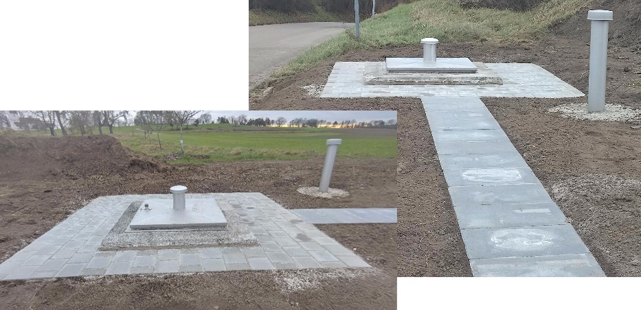 Wasserbehälter bei der Dorfeinfahrt gepflastert. Der Einstieg war schon