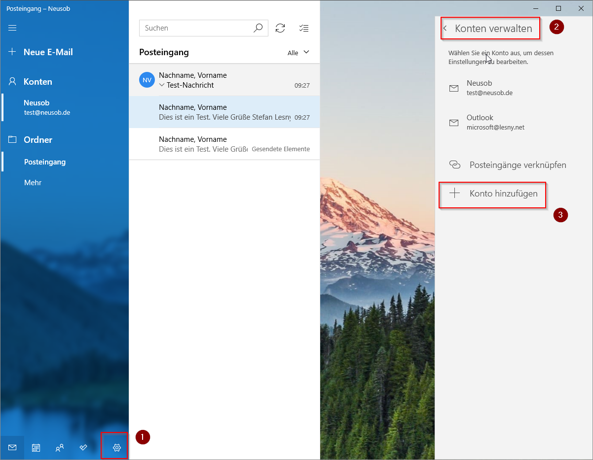Einstellungen für die MailApp von Windows 10