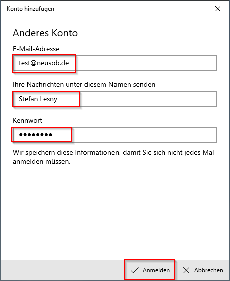 3. E-Mail-Adresse, Name und Kennwort (Passwort)